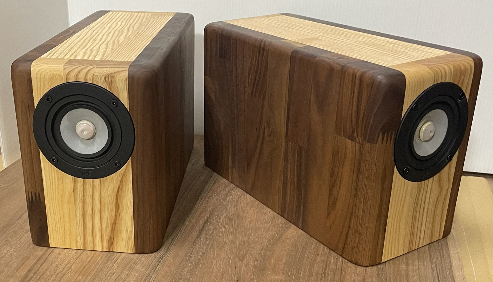 Cシリーズ(コンビネーション)として製作するつもりだったので、ホワイトアッシュに組み合わせるものとして25ミリ厚のウォルナットを採用しております。